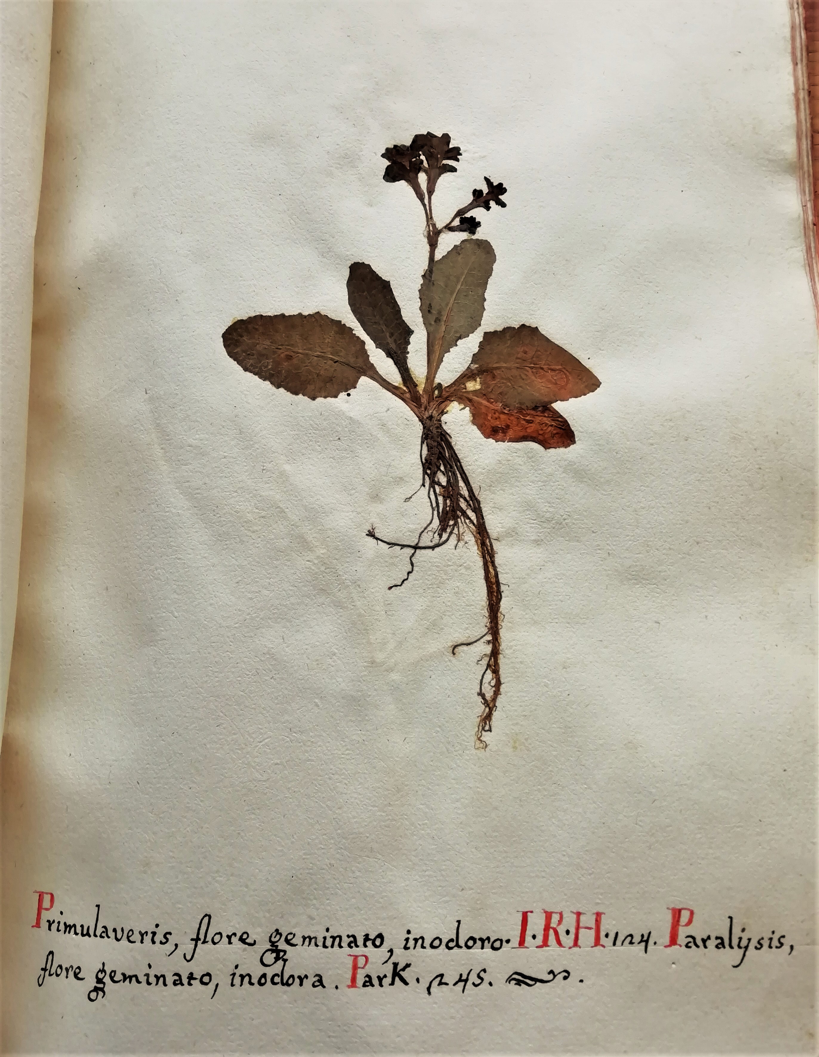Una primuletta violacea, diligentemente essiccata ed esemplata, campeggia nello splendido erbario manoscritto, redatto nel 1778 con meticolosa cura da Liberato Sabbati, professore di chirurgia e "Custos" dell'Orto botanico romano.