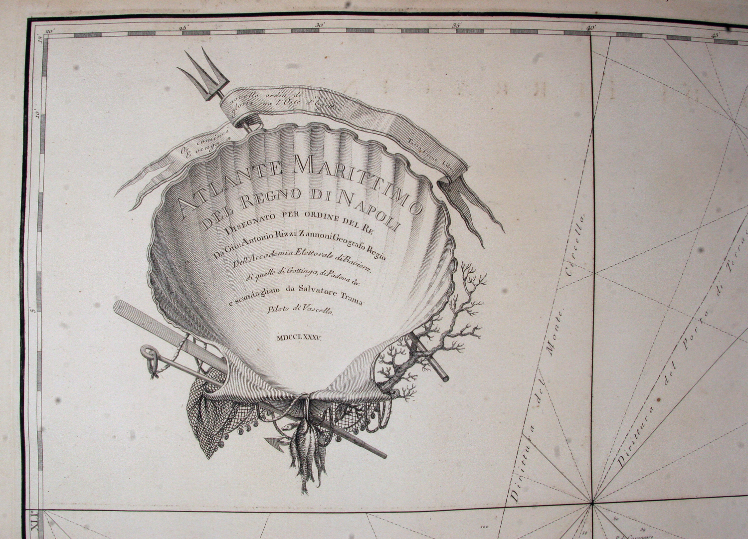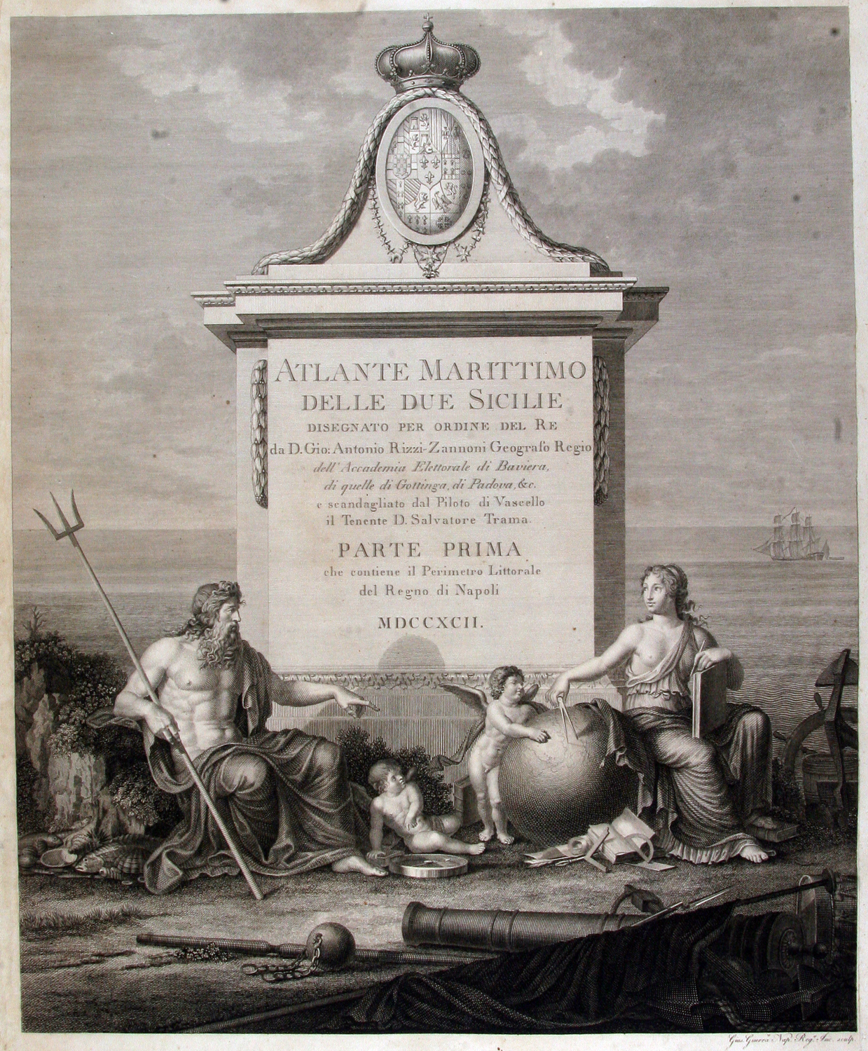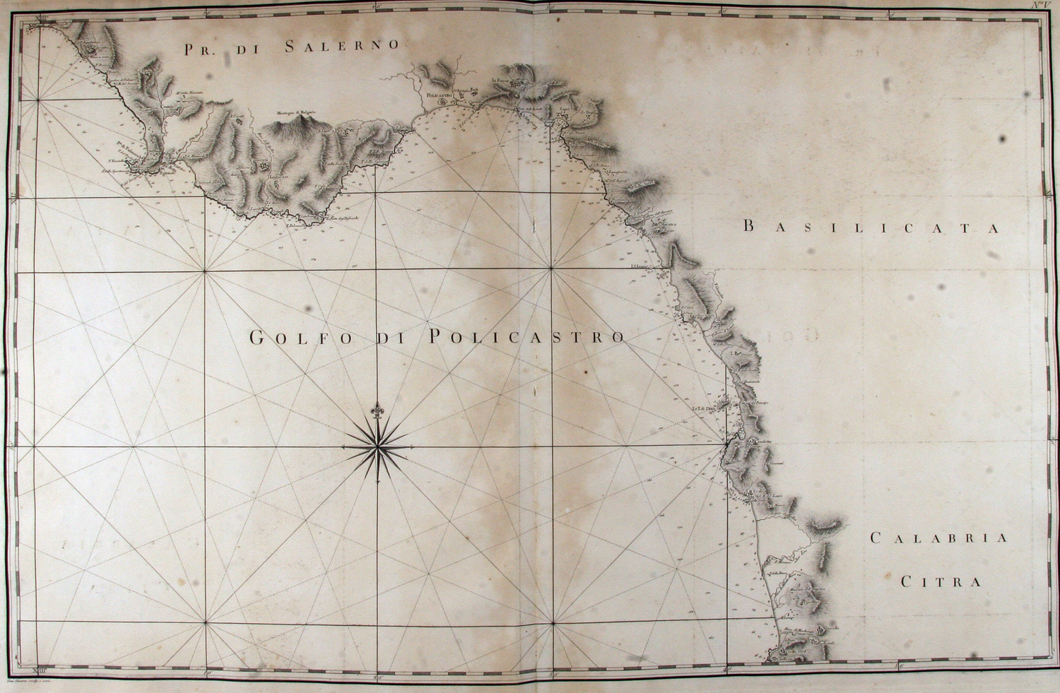 Atlante Marittimo delle Due Sicilie disegnato per ordine del Re da d. Gio. Antonio Rizzi-Zannoni geografo regio, dell'Accademia elettorale di Baviera... e scandagliato dal piloto di vascello il tenente d. Salvatore Trama. Parte prima che contiene il perimetro littorale del Regno di Napoli [Napoli, Stamperia Reale], 1792.