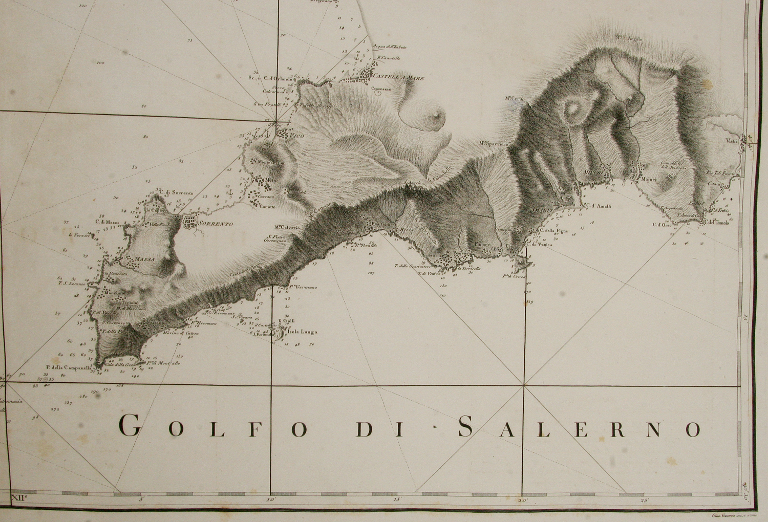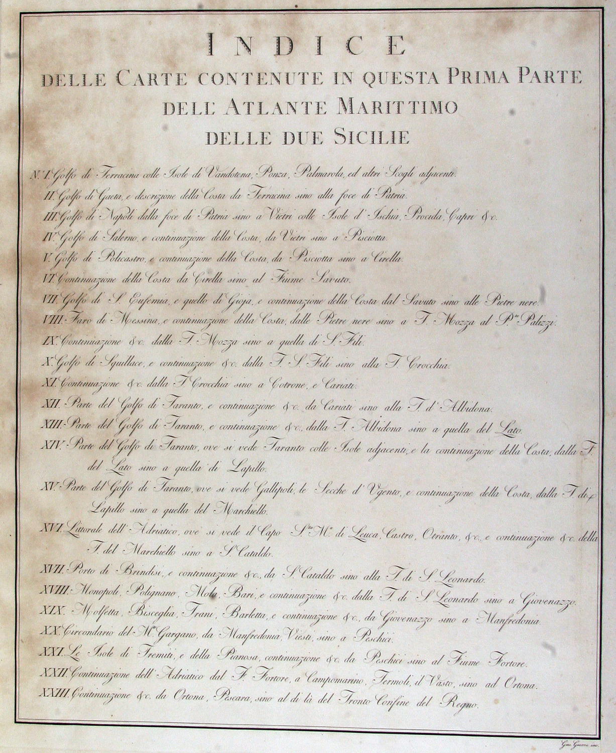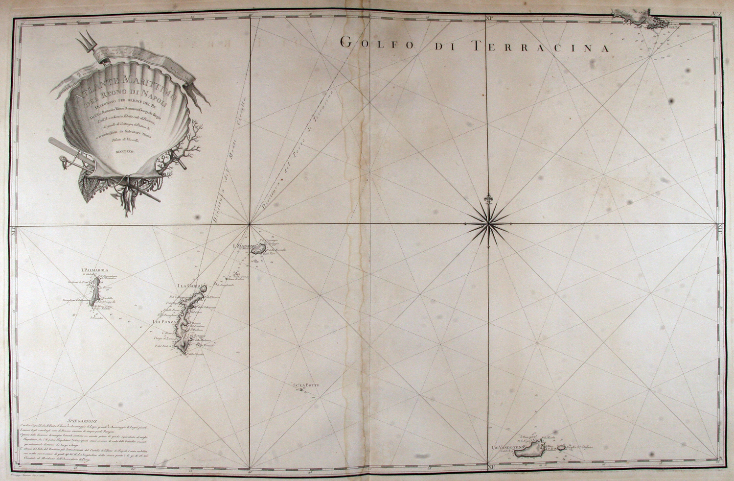 Atlante Marittimo delle Due Sicilie disegnato per ordine del Re da d. Gio. Antonio Rizzi-Zannoni geografo regio, dell'Accademia elettorale di Baviera... e scandagliato dal piloto di vascello il tenente d. Salvatore Trama. Parte prima che contiene il perimetro littorale del Regno di Napoli [Napoli, Stamperia Reale], 1792.