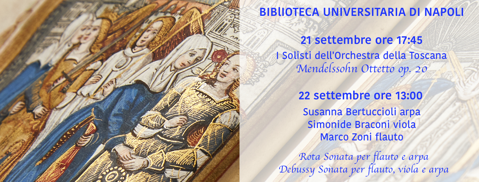 Musiche di Rota, Sonata per flauto e arpa e di Debussy, Sonata per flauto, viola e arpa.