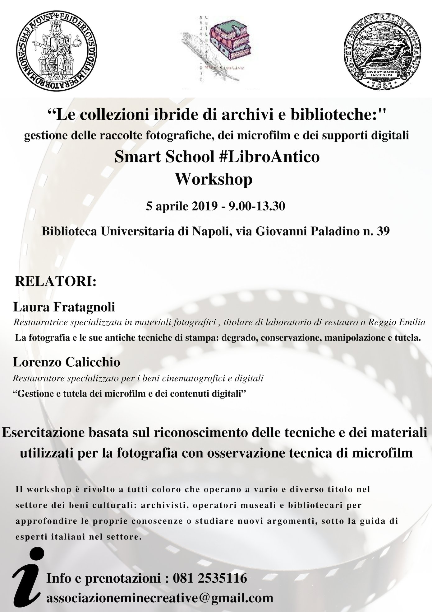 Il workshop è inserito nel vasto percorso formativo della Smart School #LibroAntico, promosso dalla Biblioteca della Società dei Naturalisti di Napoli in collaborazione con l’Associazione culturale MineCreative.